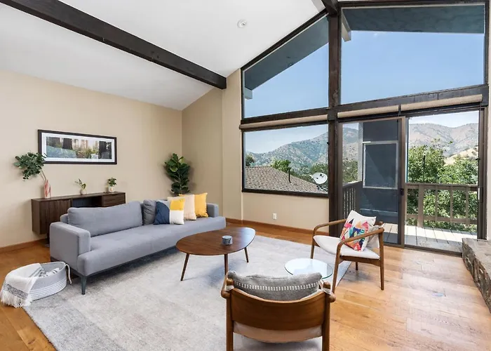 The 2-bedroom Mountain View, Hot Tub, Open Kitchen, 10M To Sequoia Villa is located 3 km from Three Rivers Historical Museum and has a sundeck and a garden to ensure a memorable stay. Featuring mountain views, the accommodation invites guests to visit Tunnel Rock, located a 15-minute ride away.